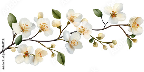 © Link Parker, Fototapeta premium Tropical spring floral watercolor featuring green leaves and flowers, isolated on transparent, perfect for greeting or wedding card decoration