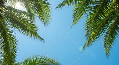 Fototapeta premium "Tropical Summer Sky with Palm Leaves Framing Bright Sunlight"