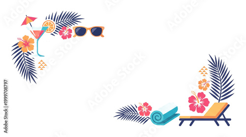 © Natalia, Obraz premium Tropical summer vacation elements frame, transparent background