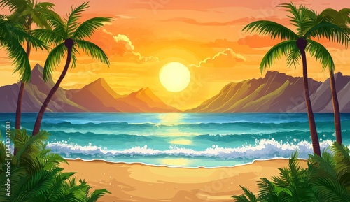 Fototapeta premium Tropical sunset beach scene (1)