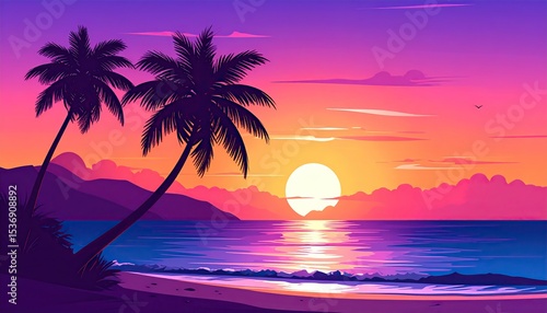 © Isti, Obraz premium Tropical sunset beach scene (3)