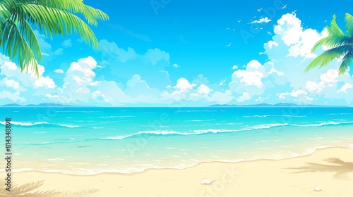Fototapeta premium Tropical sunset on the beach with seagulls flying high