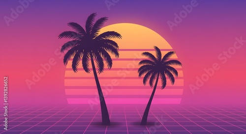 Naklejka premium Tropical sunset with palm trees and gradient sky