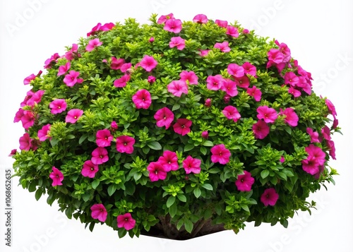 © prapatsorn, Fototapeta premium Tropical Surfinia Pink Flower Bush Isolated on White Background - Panoramic Photography of Vibrant Shrubs and Blossoms for Home and Garden Decor