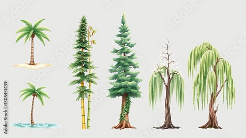 © Ahingska, Obraz premium Tropical Temperate Trees Palm Fir Bamboo Willow Illustrations