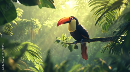 Fototapeta premium Tropical toucan in jungle, exotic bird, vibrant nature scene