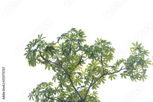 © Oradige59, Obraz premium Tropical tree leaves with branches and sunlight on white isolated background for green foliage backdrop and copy space