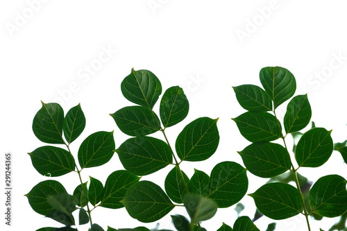 © Oradige59, Fototapeta premium Tropical tree leaves with branches on white isolated background for green foliage backdrop