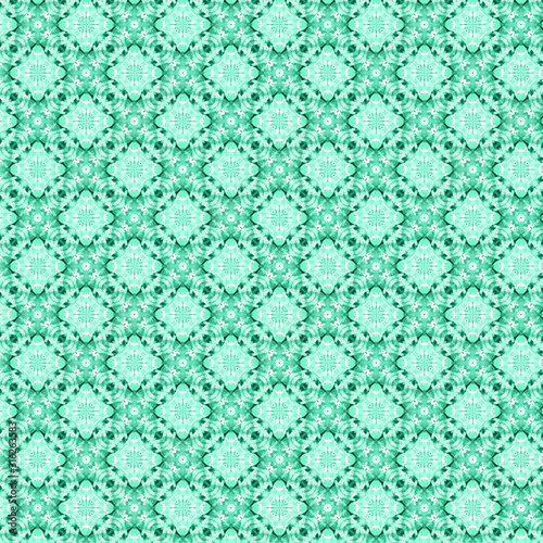 © Marianne Campolongo, Fototapeta premium Tropical turquoise seamless all over diamond shape pattern spring or summer background Easter holiday backdrop.