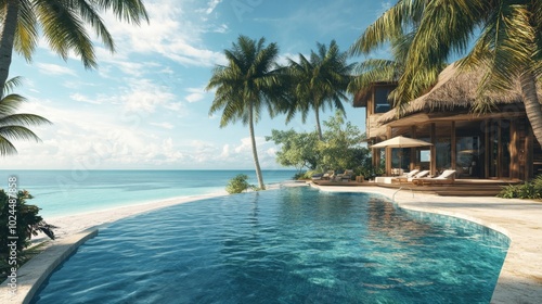 Naklejka premium Tropical Villa with Private Pool Overlooking the Ocean