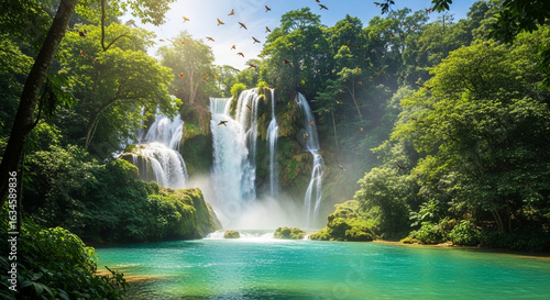 © Ai Creator, Fototapeta premium Tropical Waterfall Oasis in the Jungle