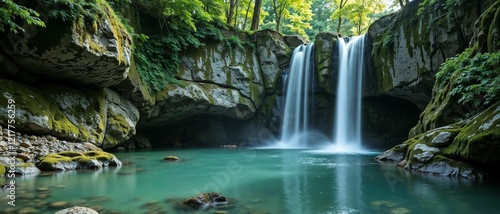 Naklejka premium Tropical Waterfall Paradise: A Serene Escape in Nature
