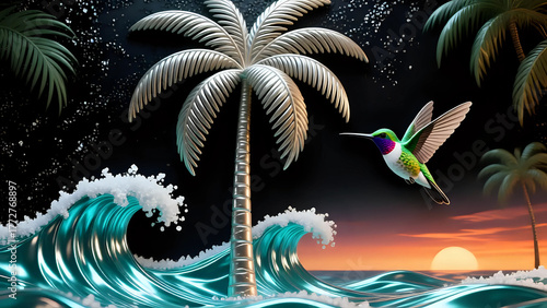 Fototapeta premium Tropical world and humming bird।Walll Decor