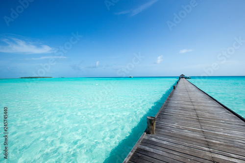 © Pakhnyushchyy, Obraz premium tropikalna wyspa Malediwy z białą piaszczystą plażą i morzem