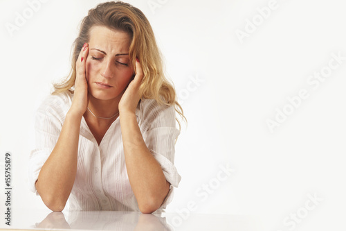 © zwiebackesser, Fototapeta premium Troubled womant. Close up portrait.