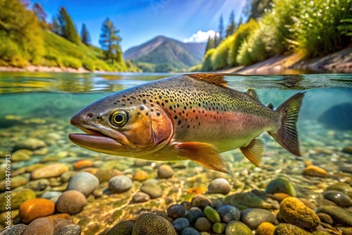 © Atittaya, Fototapeta premium Trout swimming in crystal clear river stream