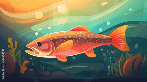 © Ky, Naklejka premium Trout Under at sea Illustration vector