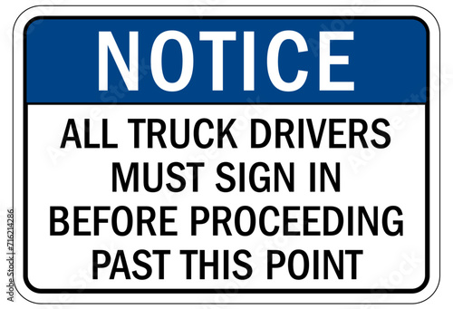 Fototapeta premium Truck driver sign all truck drivers must sign in before proceeding past this point