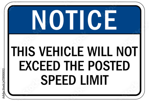 Fototapeta premium Truck safety sign this vehicle will not exceed the posted speed limit