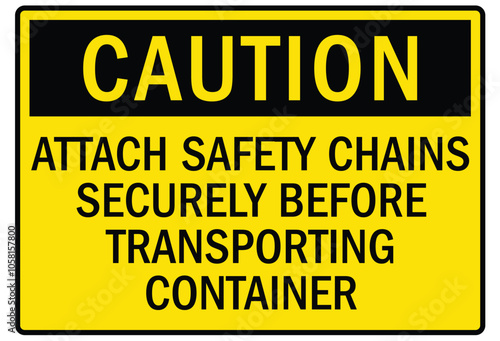 Fototapeta premium Truck safety warning sign attach safety chains securely before transporting container
