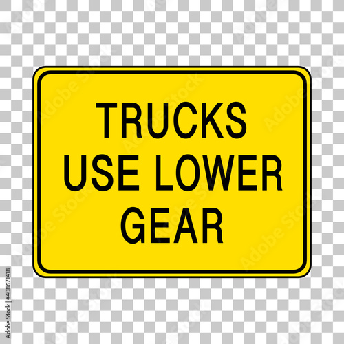 Fototapeta premium Trucks use lower gear warning sign isolated on transparent background