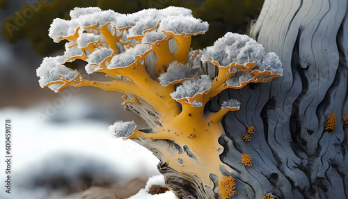 Obraz premium Trumpet lichen growing on tree trunk in Winter