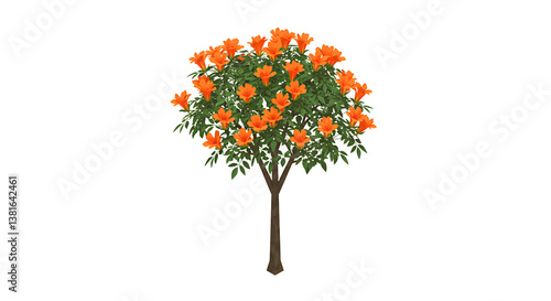 © SRRiadi, Fototapeta premium Trumpet vine tree with vibrant orange flowers against a white background