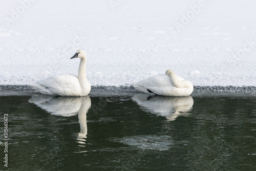 Fototapeta premium Trumpeter Swans on the Yellowstone River