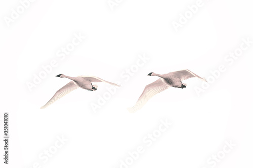 © Clement, Obraz premium Trumpeter Swans, Pair, wings down