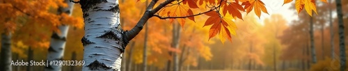 © Nattawadee, Obraz premium Trunk of silver birch tree against autumn sky, deciduous, forest, fall