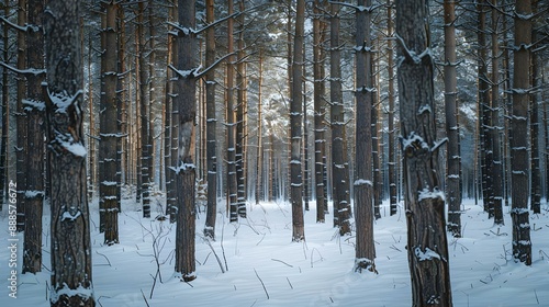 © Daniel, Fototapeta premium Trunks in a pine forest on a winter day