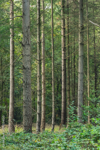 Obraz premium Trunks in sunny pine forest.