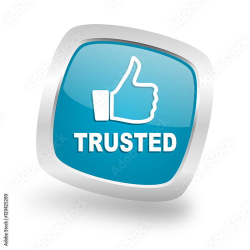© Alex White, Obraz premium trusted square blue glossy chrome silver metallic web icon