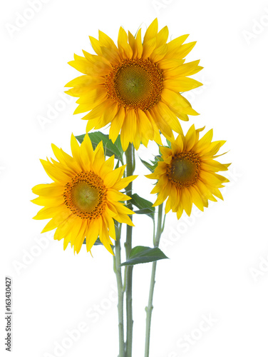 © Antonel, Fototapeta premium Trzy słonecznika odizolowywającego na białym tle.