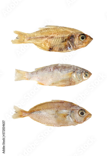 © prapann, Obraz premium Trzy suszone ryby na białym tle