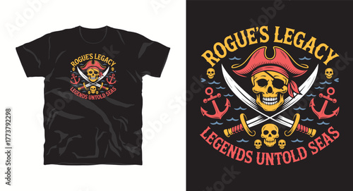 © Pronob, Naklejka premium Tshirt Print with Pirate Skull Swords and Anchors Graphic