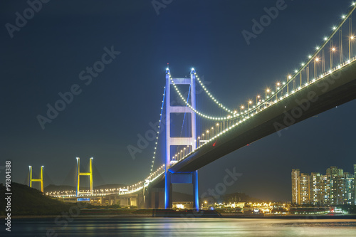 Fototapeta premium Tsing Ma bridge in Hong Kong at night
