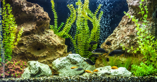 Fototapeta premium Ttropical freshwater aquarium with fishes