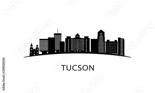 © greens87, Fototapeta premium Tucson city skyline. Black cityscape isolated on white background. Vector banner.