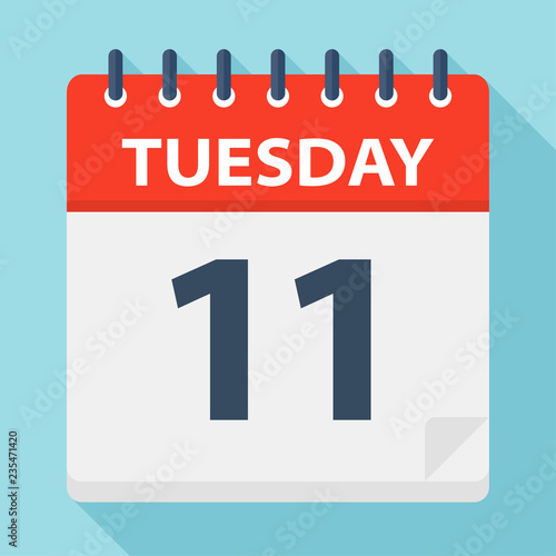 © Porcupen, Fototapeta premium Tuesday 11 - Calendar Icon. Vector illustration of week day paper leaf.