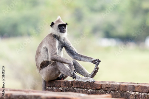 Fototapeta premium Tufted gray langur monkey in Anuradhapura