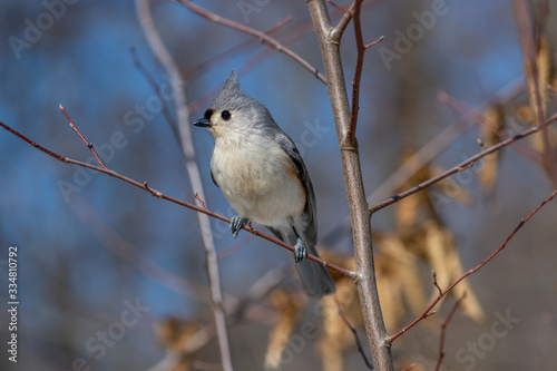 © Kirk Hewlett, Naklejka premium Tufted titmouse (Baeolophus bicolor) perching on a branch in winter.