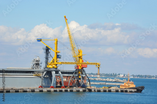 © Unkas Photo, Fototapeta premium Tugboat and port cargo crane