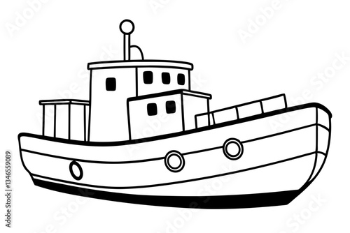 © Pinak, Obraz premium tugboat line art silhouette vector illustration