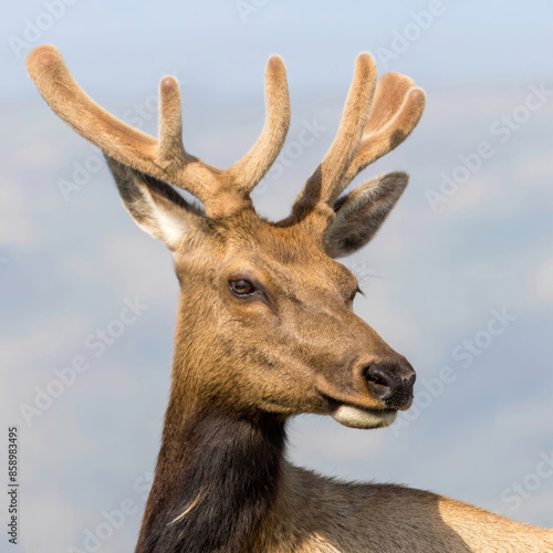 Naklejka premium Tule Elk Buck Headshot Tomales Point, Point Reyes National Seashore, Marin County, California, USA.