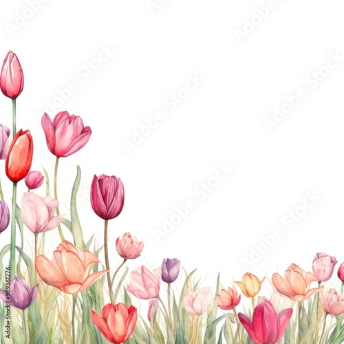 Fototapeta premium Tulip border backgrounds flower plant.