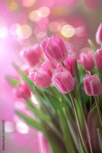 Fototapeta premium Tulip bouquet on pink background