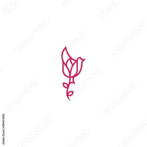 © Vector Ace, Fototapeta premium Tulip flower and flying bird logo design.