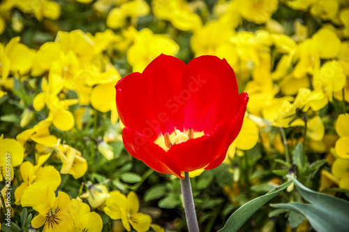 © chayakorn, Obraz premium Tulip flower with Beautiful orange and red tulips on spring