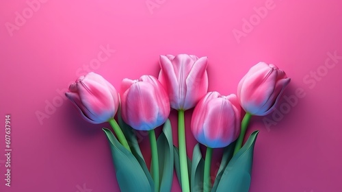 Fototapeta premium Tulip flowers on pink background. Generative ai